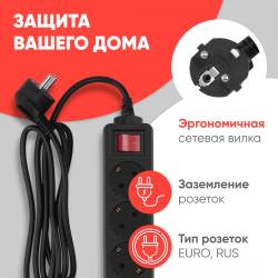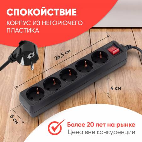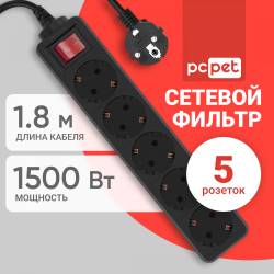 Сетевой фильтр PC Pet AP01006-1.8-B 1.8м (5 розеток) черный (пакет ПЭ)
