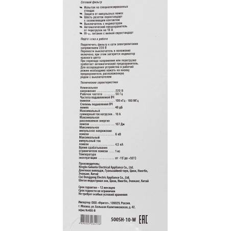 Сетевой фильтр Buro 500SH-10-W 10м (5 розеток) белый (коробка)