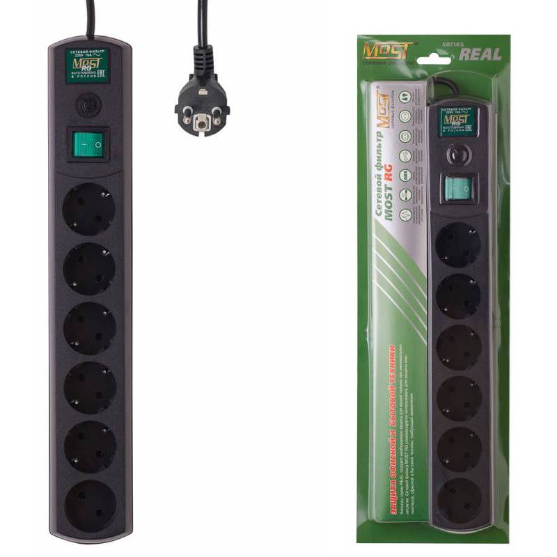 Сетевой фильтр Most RG 2м (6 розеток) черный (коробка)