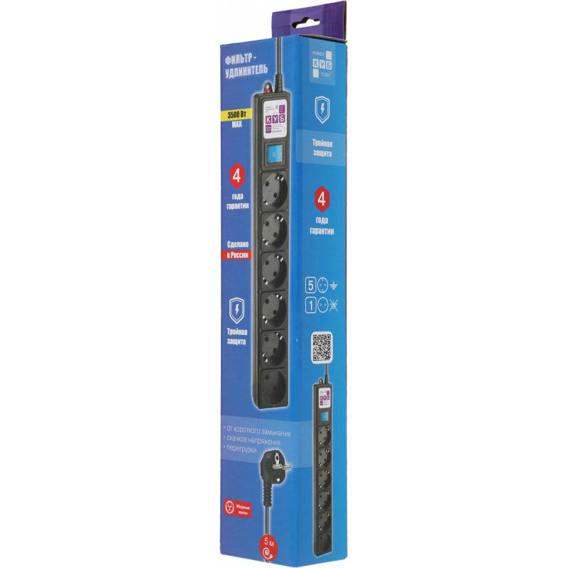 Сетевой фильтр Powercube SPG6-B-5M 5м (6 розеток) черный (коробка)