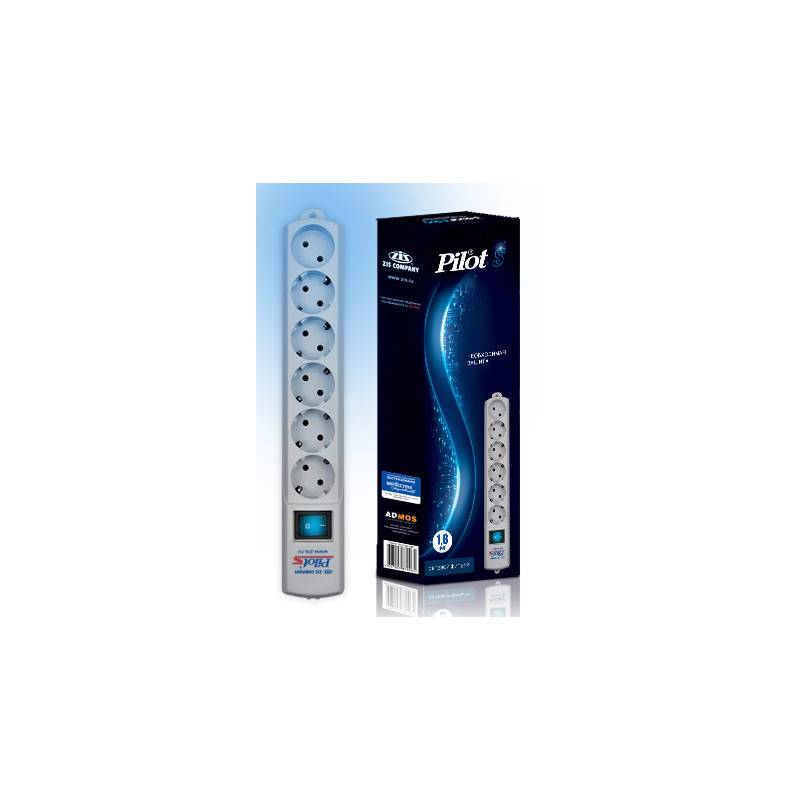 Сетевой фильтр Pilot S 1.8м (6 розеток) белый (коробка)