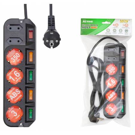 Сетевой фильтр Most ARG 1.6м (6 розеток) черный (коробка)