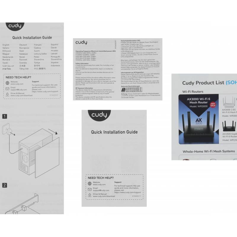 Сетевой адаптер Wi-Fi + Bluetooth Cudy WE3000S АХ5400 PCI Express (ант.внеш.съем) 2ант.