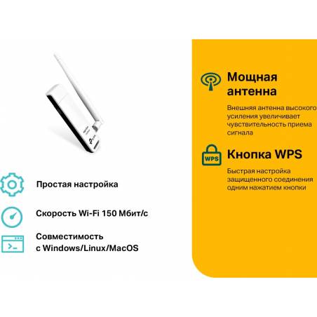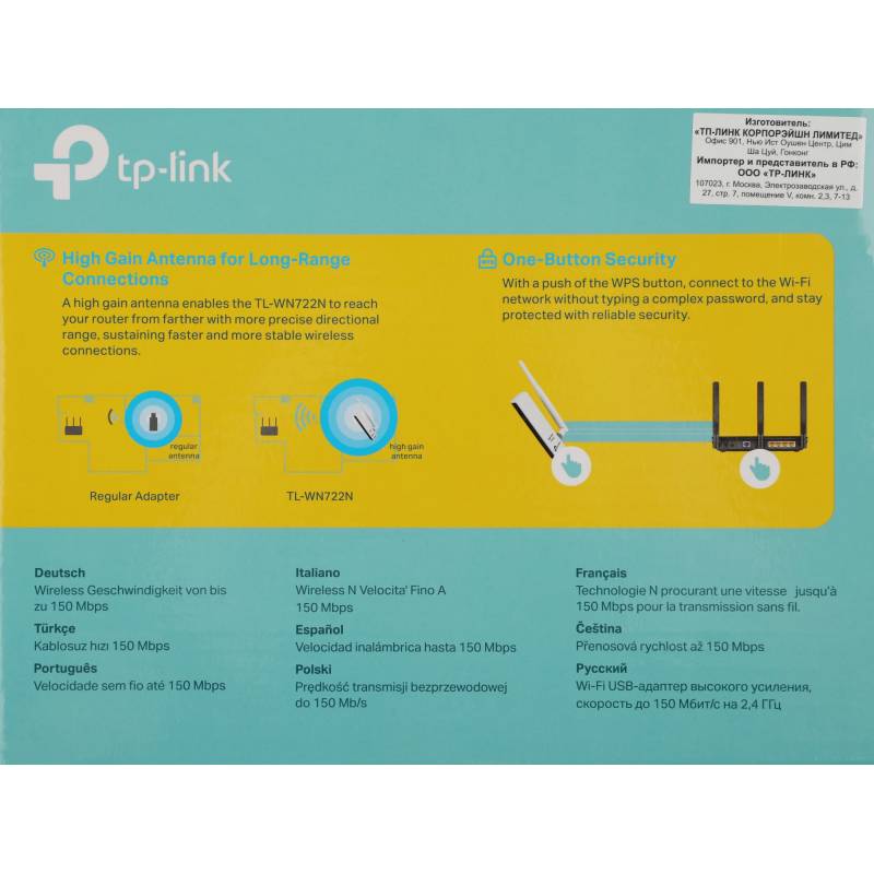 Сетевой адаптер Wi-Fi TP-Link TL-WN722N N150 USB 2.0 (ант.внеш.съем) 1ант.