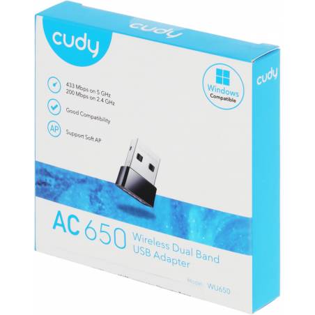 Сетевой адаптер Wi-Fi Cudy WU650 AC650 USB 2.0 (ант.внутр.) 1ант.