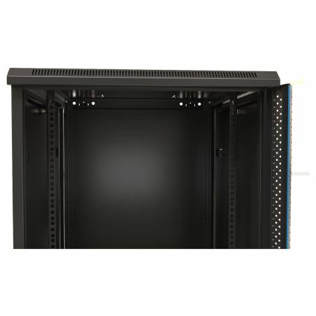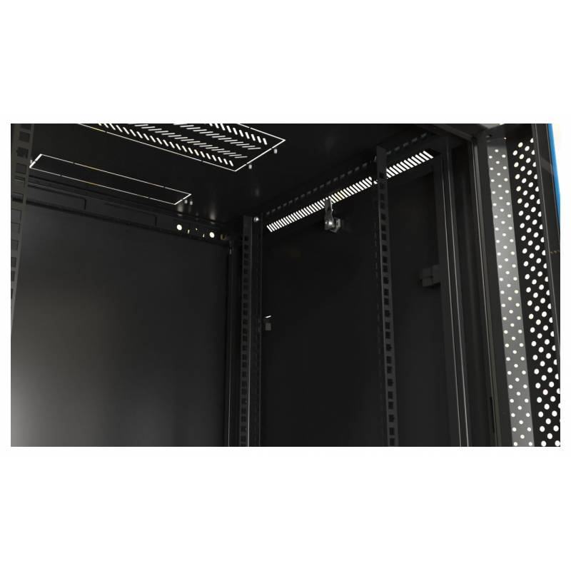 - холоднокатаная сталь (SPCC), толщина стальных компонентов: рама каркаса, нижняя панель, задняя панель, передняя дверь, боковые панели, верхняя панель - 1,2 мм; горизонтальный опорный уголок - 2,0 мм; 19" монтажный профиль - 2,0 мм