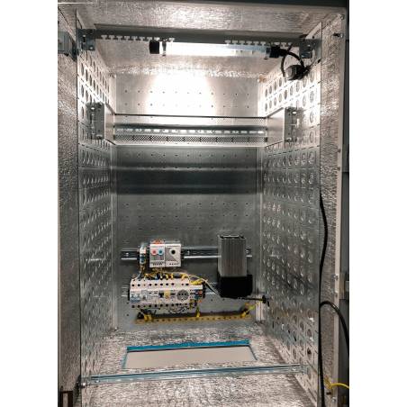 - ВРУ, терморегулятор, гигростат (35-95%), нагреватель, модуль вентиляторный R-FAN, система климат-контроля CE, переключатель кнопочный 250 В/0,25 А, шина заземления, клеммы с винтовым зажимом 6 кв.мм. - 4 шт.