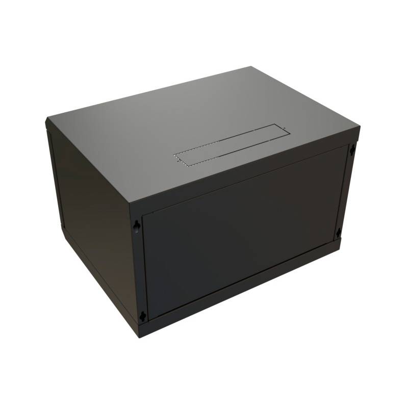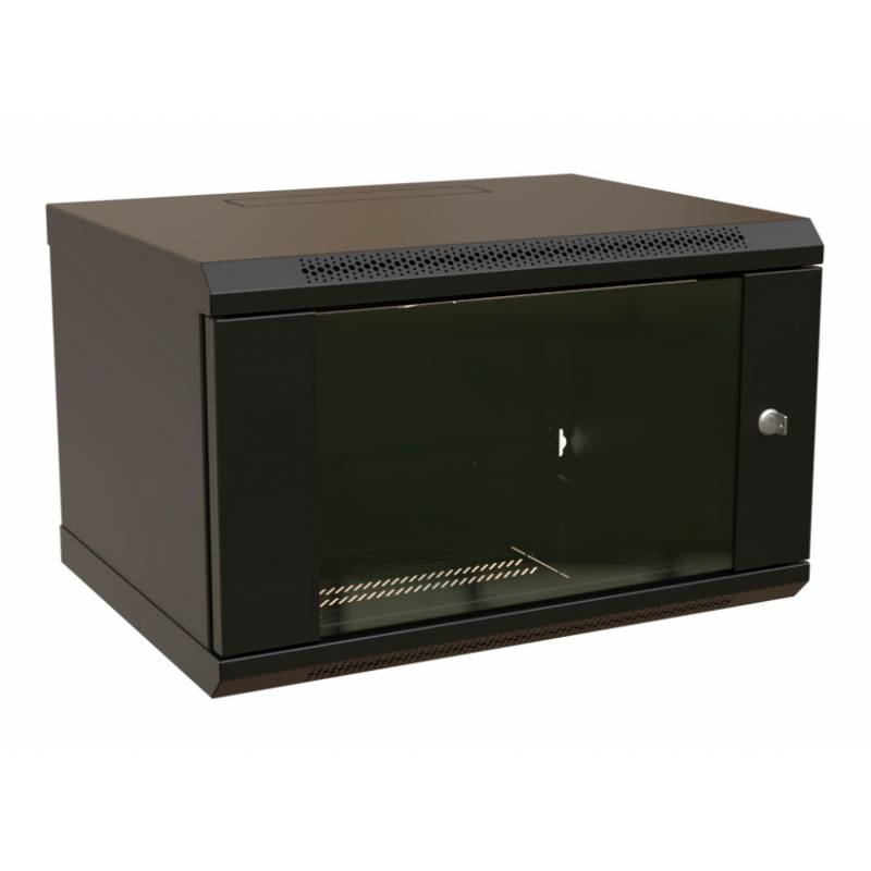 Шкаф коммутационный WRline (WR-TW-0945-GP-RAL9004) настенный 9U 600x450мм пер.дв.стекл 2 бок.пан. направл.под винты 60кг черный