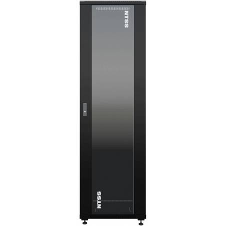 Шкаф коммутационный NTSS Премиум (NTSS-R42U6060GS-BL) напольный 42U 600x600мм пер.дв.стекл металл 900кг черный 510мм 86кг 1987мм