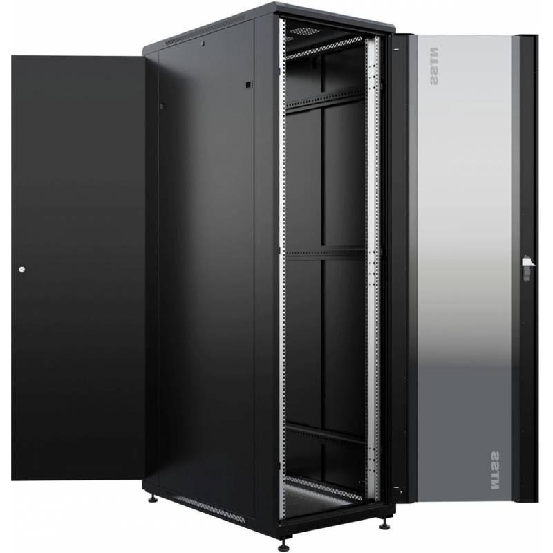 Шкаф серверный NTSS Премиум (NTSS-R42U80100GS-BL) напольный 42U 800x1000мм пер.дв.стекл металл 900кг черный 910мм 160кг 1987мм I