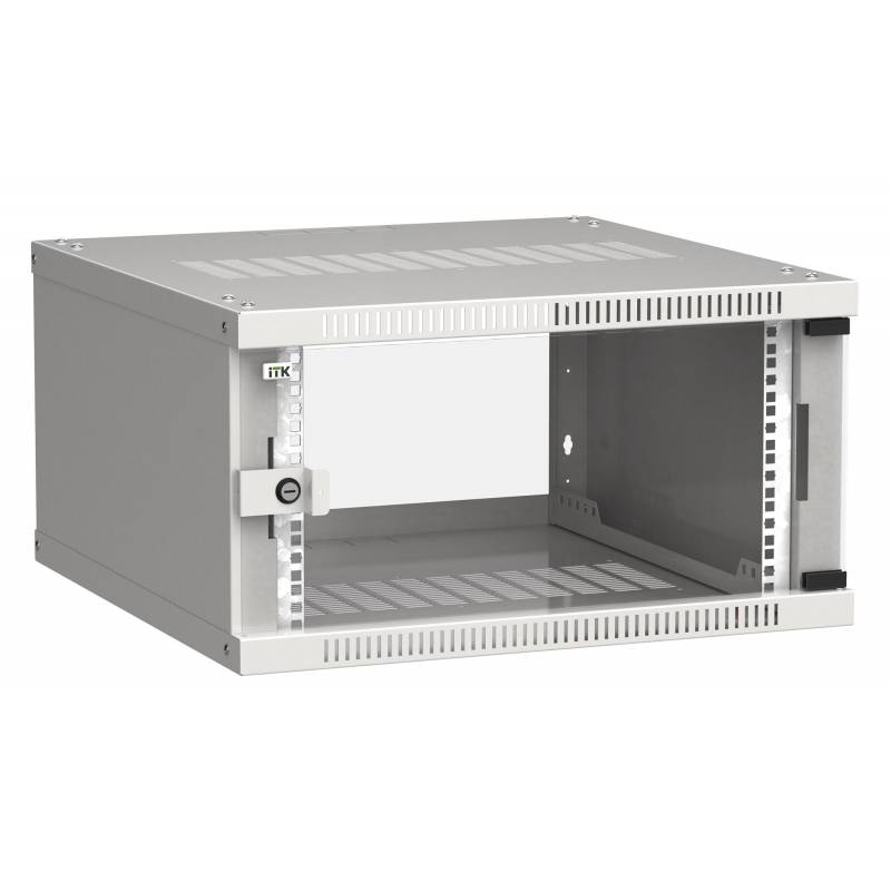 Шкаф коммутационный ITK Linea WE (LWE3-06U66-GF) настенный 6U 600x600мм пер.дв.стекл направл.под закл.гайки 50кг серый 550мм 14.
