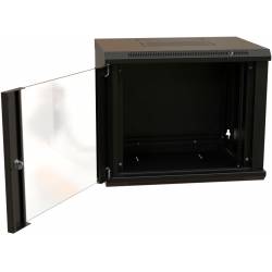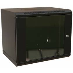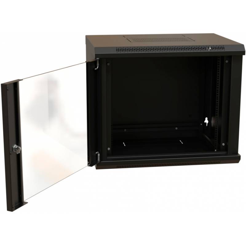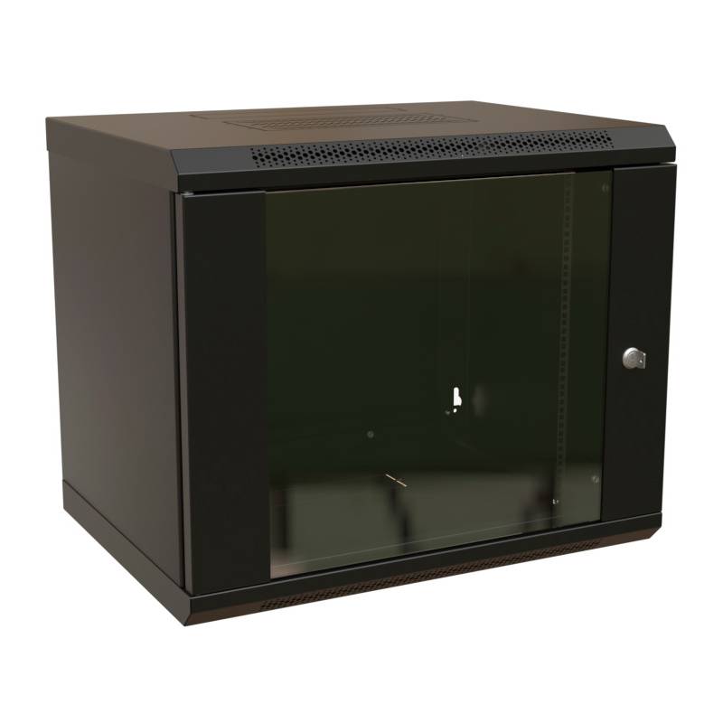 Шкаф коммутационный WRline (WR-TW-1566-GP-RAL9004) настенный 15U 600x600мм пер.дв.стекл 2 бок.пан. направл.под винты 60кг черный