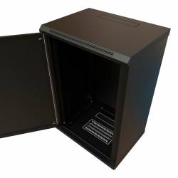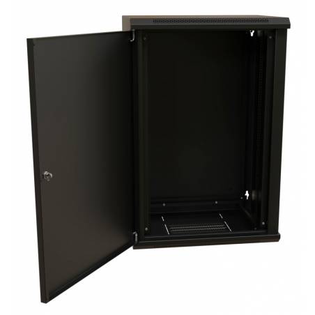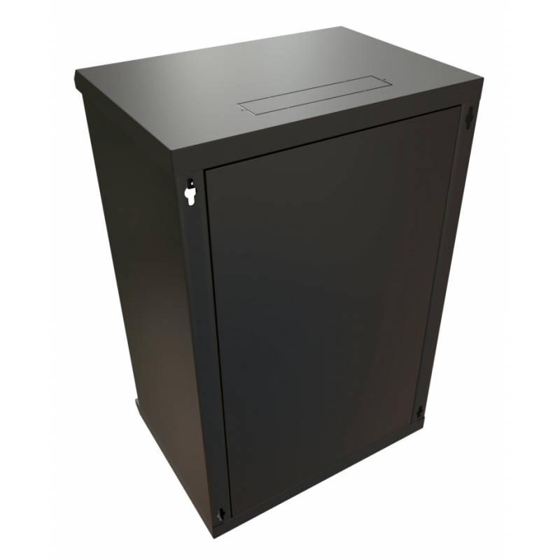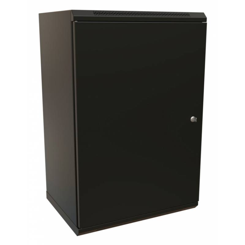Шкаф коммутационный WRline (WR-TW-1866-SR-RAL9004) настенный 18U 600x600мм пер.дв.металл 2 бок.пан. направл.под винты 60кг черны