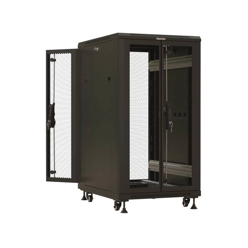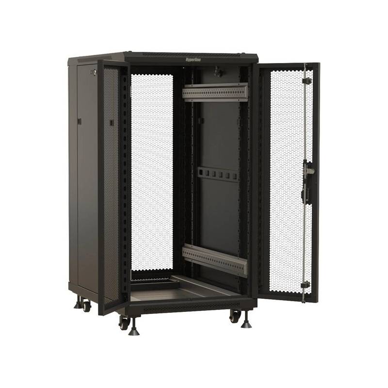 Шкаф серверный Hyperline (TTBR-2266-DD-RAL9004) напольный 22U 600x600мм пер.дв.перфор. задн.дв.перфор. 2 бок.пан. 1000кг черный