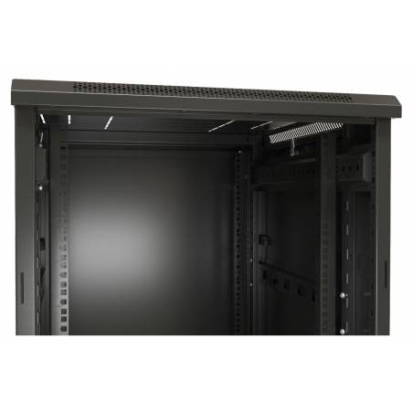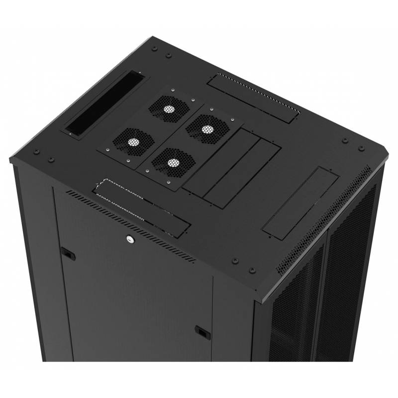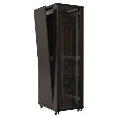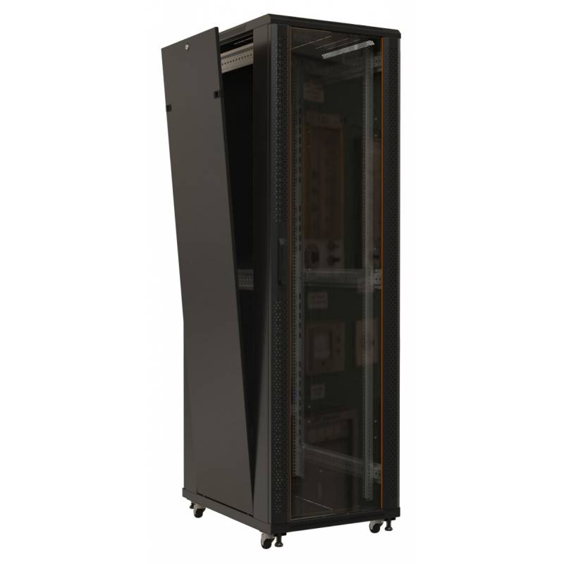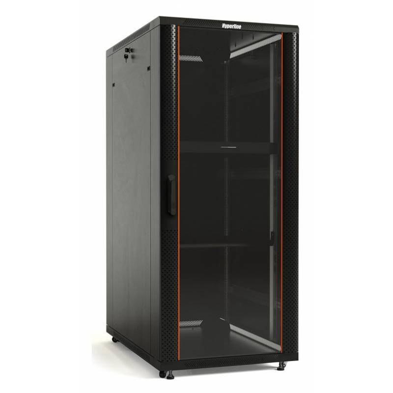 Шкаф коммутационный Hyperline (TTBR-2266-AS-RAL9004) напольный 22U 600x600мм пер.дв.стекл задн.дв.спл.стал.лист 2 бок.пан. 800кг