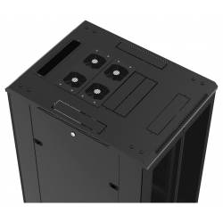 - Сборный каркас: передняя и задняя рамы каркаса, Верхняя и нижняя панели каркаса (крыша и пол), Щеточный кабельный ввод для нижней панели (1 шт.), Передняя и задняя двери с рукоятками и замками, Съемные боковые панели с защелками и замками (2 шт.), 19"