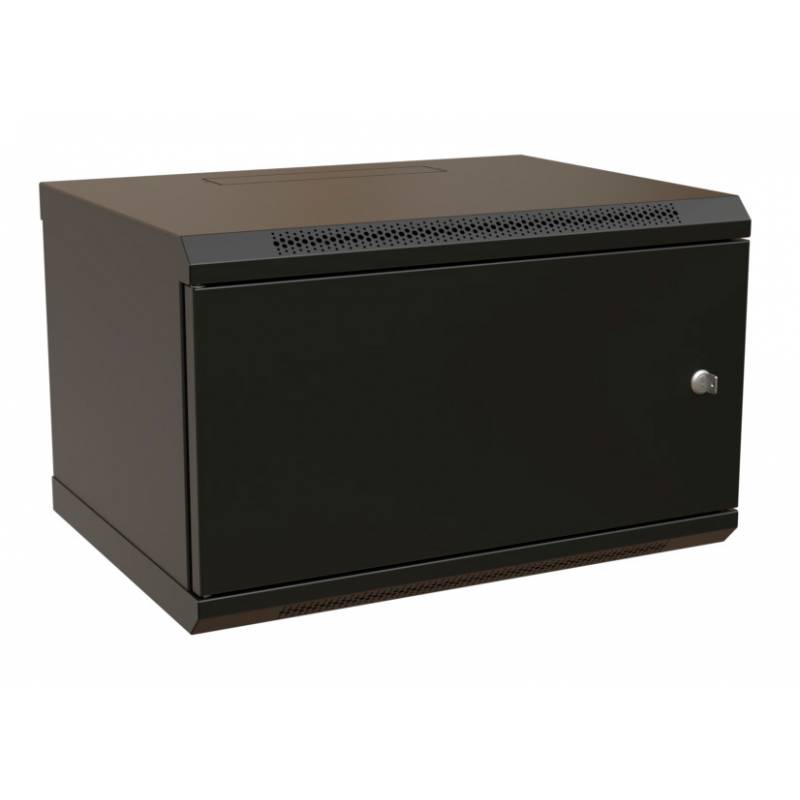 Шкаф коммутационный WRline (WR-TW-0645-SR-RAL9004) настенный 6U 600x450мм пер.дв.металл 2 бок.пан. направл.под винты 60кг черный