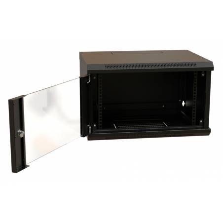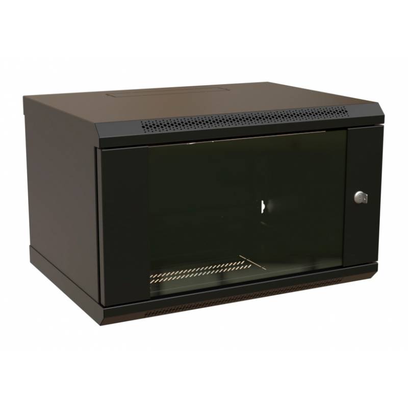 Шкаф коммутационный WRline (WR-TW-0966-GP-RAL9004) настенный 9U 600x600мм пер.дв.стекл 2 бок.пан. направл.под винты 60кг черный