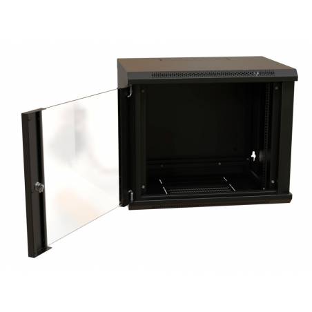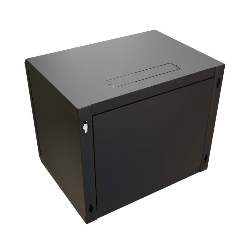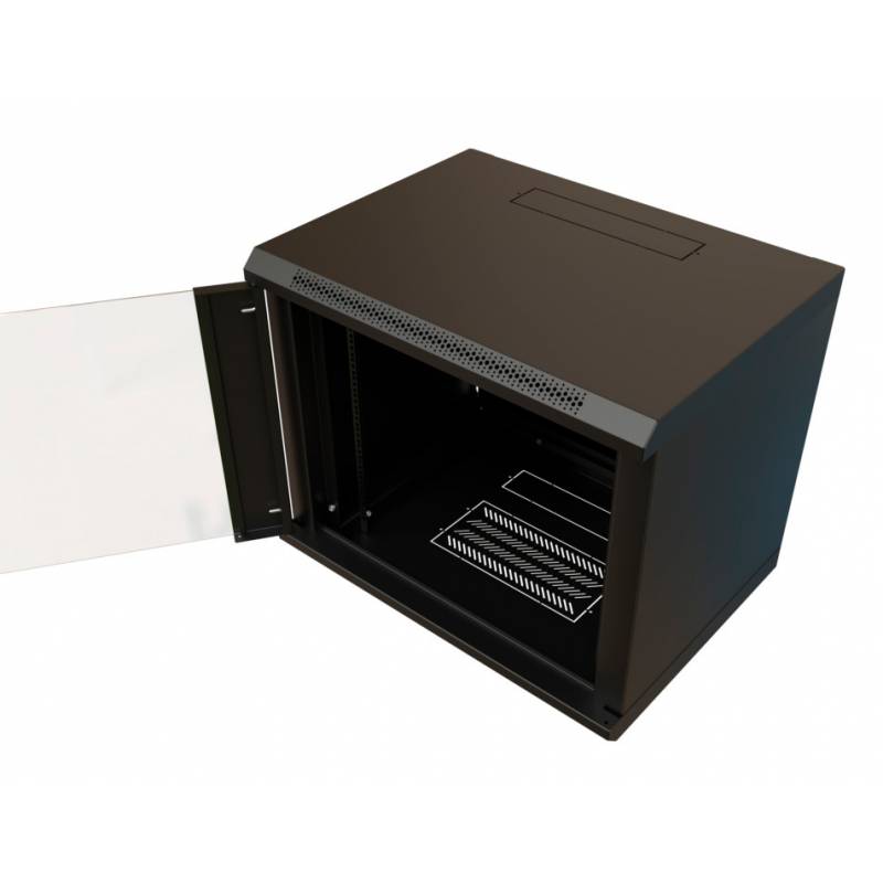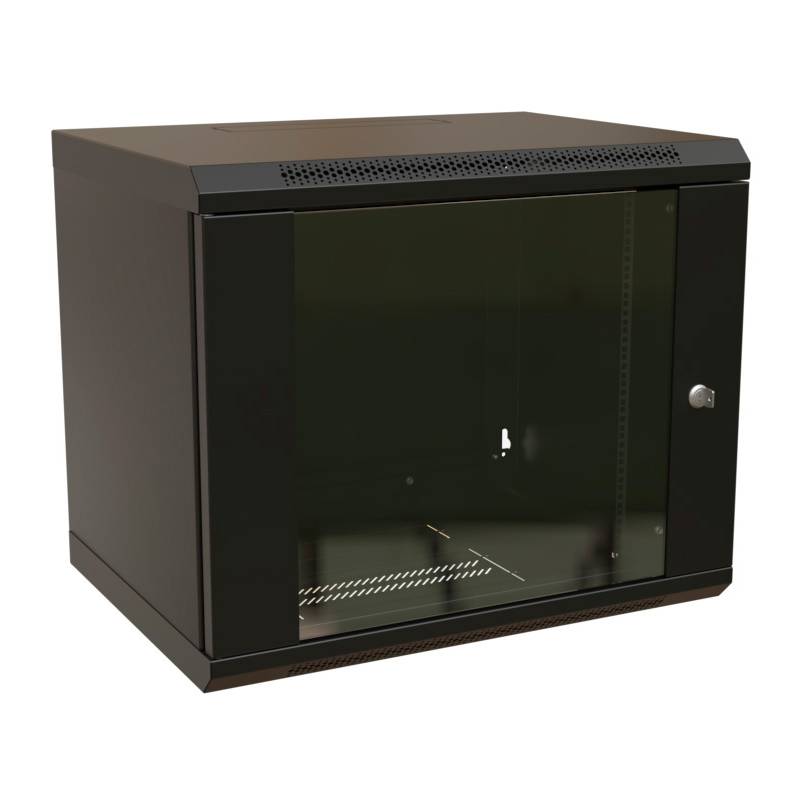 Шкаф коммутационный WRline (WR-TW-1266-GP-RAL9004) настенный 12U 600x600мм пер.дв.стекл 2 бок.пан. направл.под винты 60кг черный