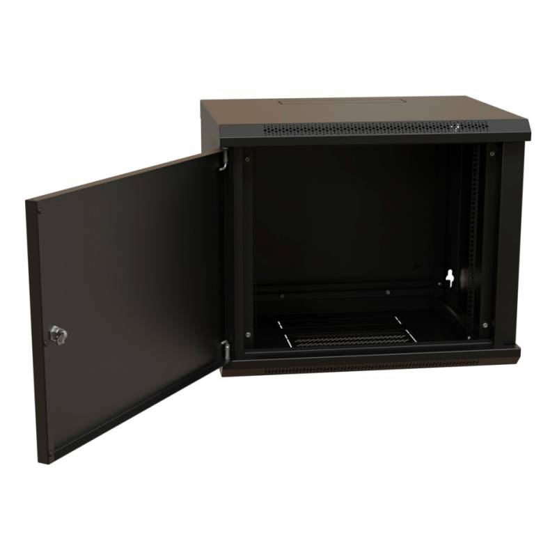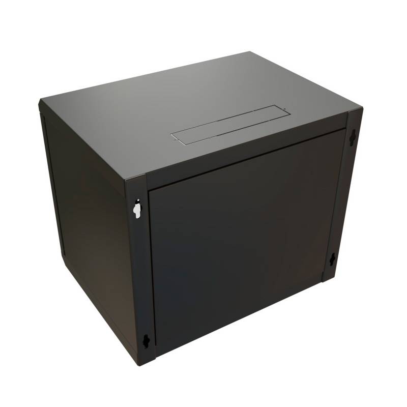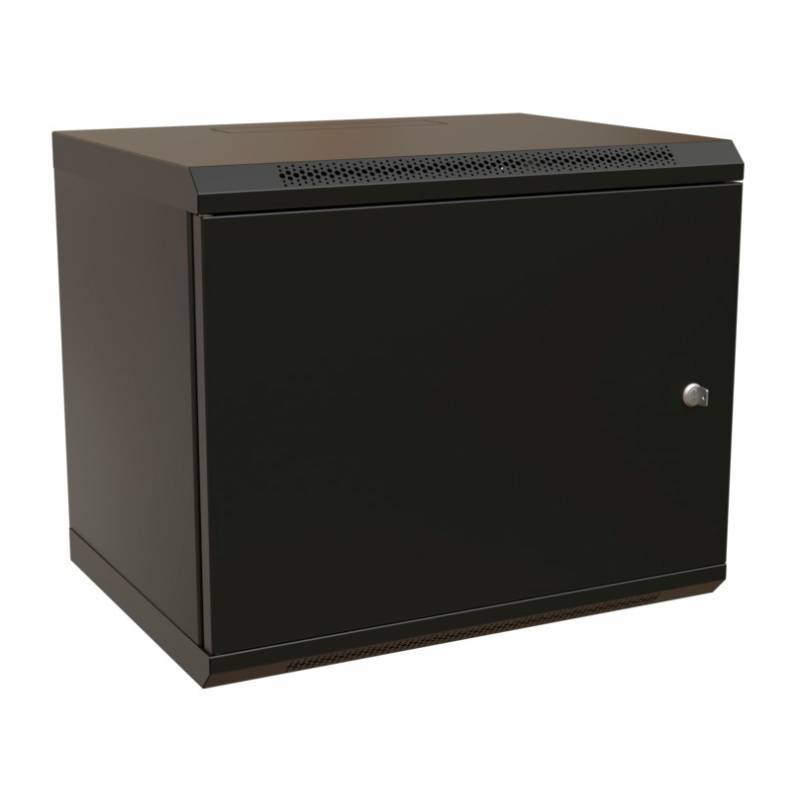Шкаф коммутационный WRline (WR-TW-1266-SR-RAL9004) настенный 12U 600x600мм пер.дв.металл 2 бок.пан. направл.под винты 60кг черны