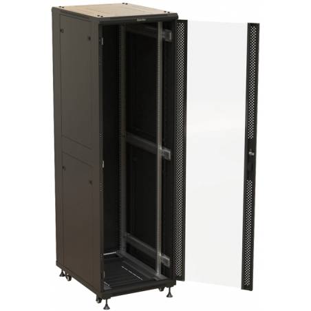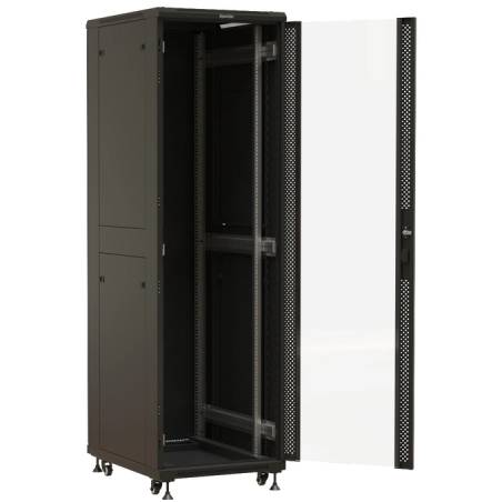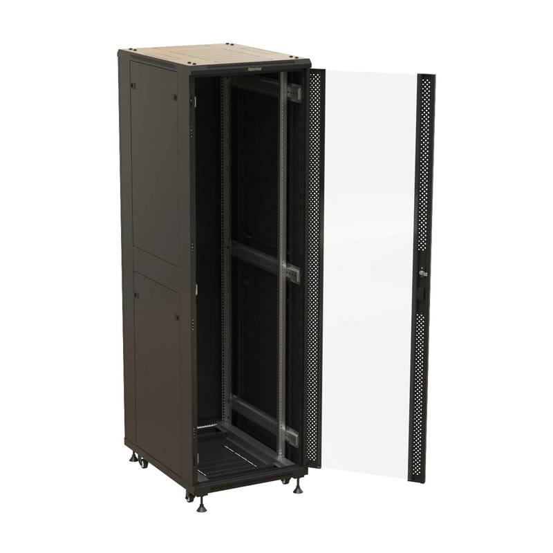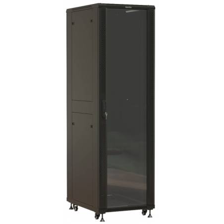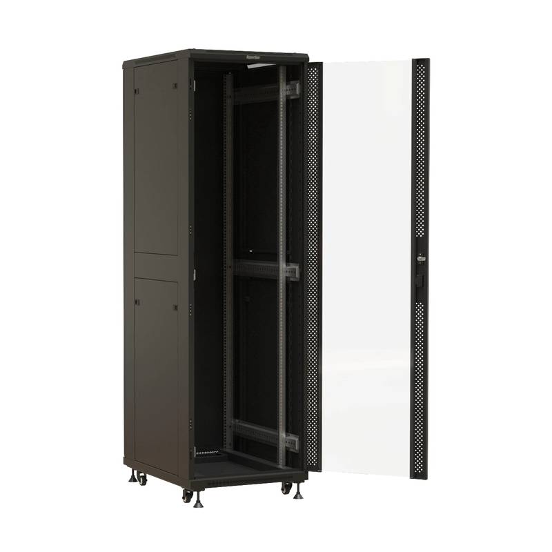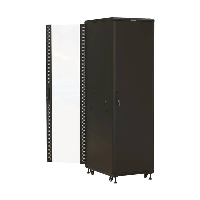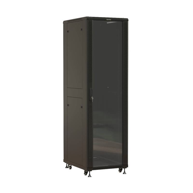 Шкаф серверный Hyperline (TTBR-4261-AS-RAL9004) напольный 42U 600x1000мм пер.дв.стекл задн.дв.спл.стал.лист 2 бок.пан. 800кг чер