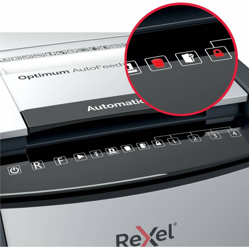 Шредер Rexel Optimum AutoFeed 130M черный с автоподачей (секр.P-5) фрагменты 130лист. 44лтр. скрепки скобы пл.карты