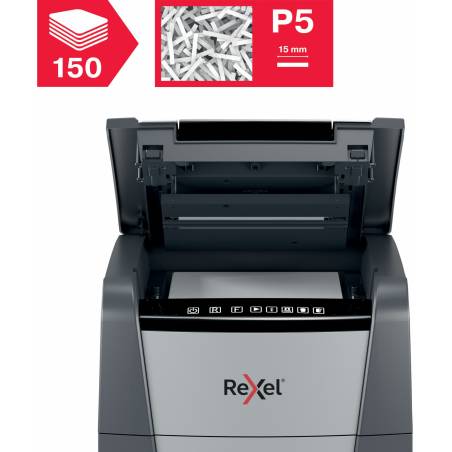 Шредер Rexel Optimum AutoFeed 150M черный с автоподачей (секр.P-5) фрагменты 150лист. 44лтр. скрепки скобы пл.карты