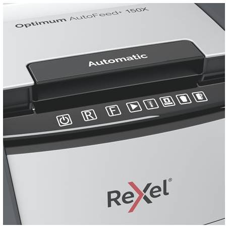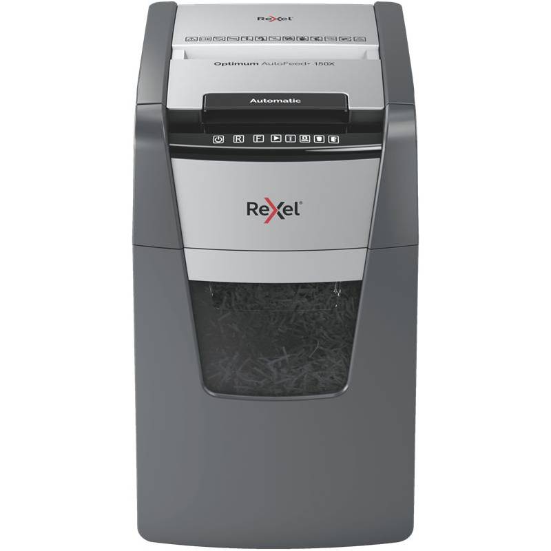 Шредер Rexel Optimum AutoFeed 150X черный с автоподачей (секр.P-4) фрагменты 150лист. 44лтр. скрепки скобы пл.карты