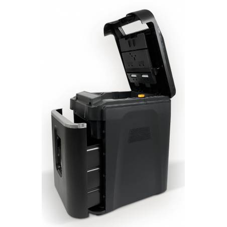 Шредер Heleos АП37-4 черный/серебристый с автоподачей (секр.P-4) фрагменты 220лист. 37лтр. скрепки скобы пл.карты