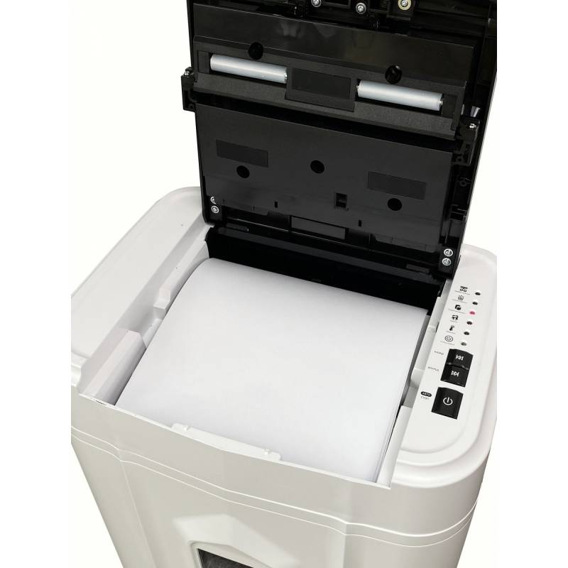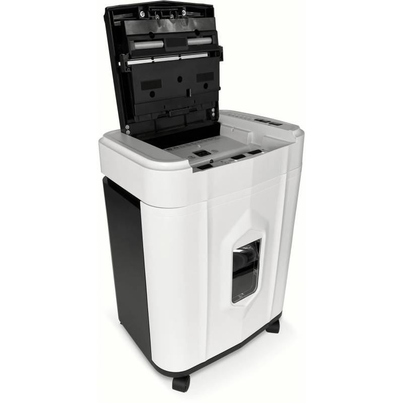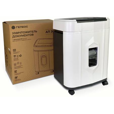 Шредер Heleos АП20-5 белый/черный с автоподачей (секр.P-5) фрагменты 131лист. 20лтр. скрепки скобы пл.карты
