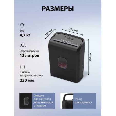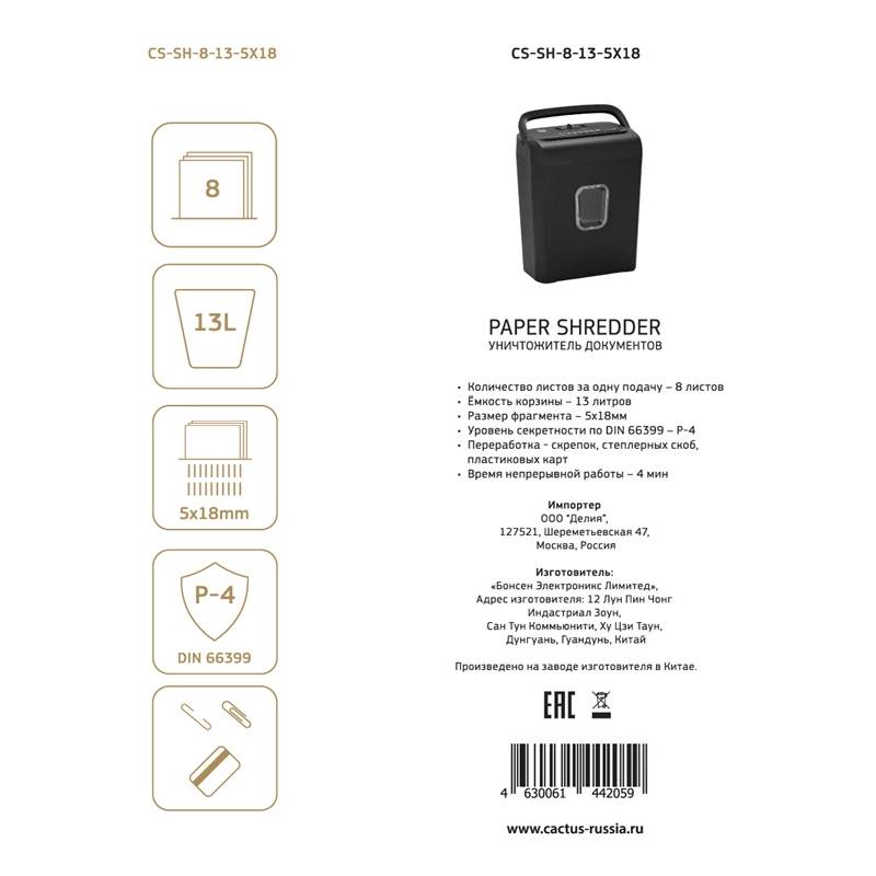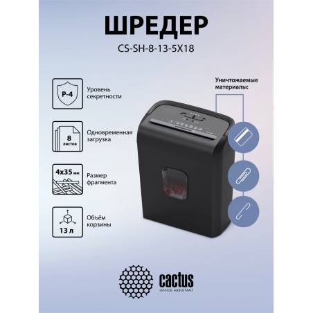 Шредер Cactus CS-SH-8-13-5X18 (секр.P-4) фрагменты 8лист. 13лтр. скрепки скобы пл.карты