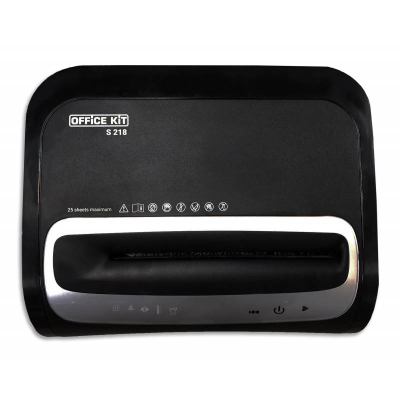 Шредер Office Kit S218 (1,9x13) черный (секр.P-5) фрагменты 22лист. 30лтр. скрепки скобы пл.карты CD