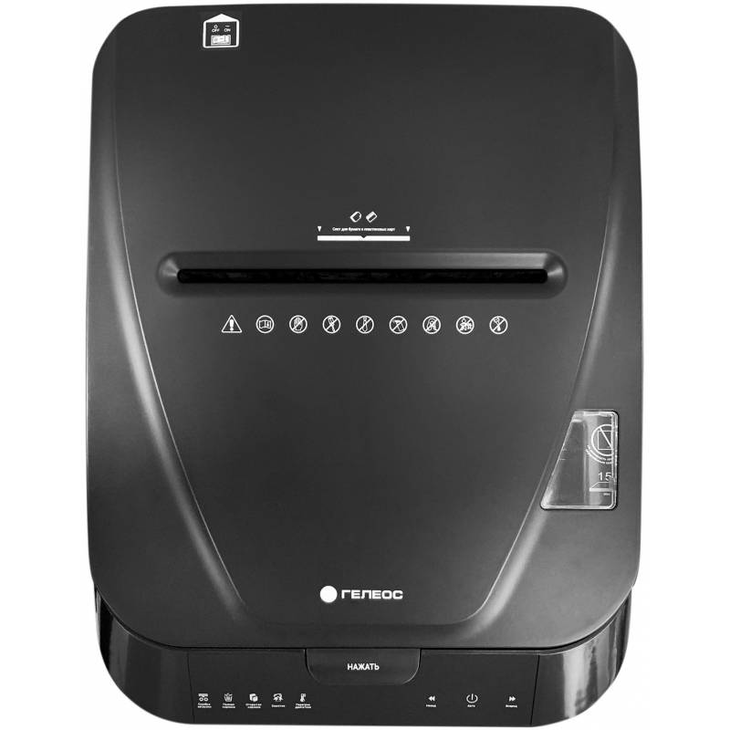 Шредер Heleos АП40 черный с автоподачей (секр.P-4) фрагменты 150лист. 37лтр. скрепки скобы пл.карты