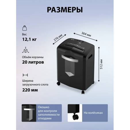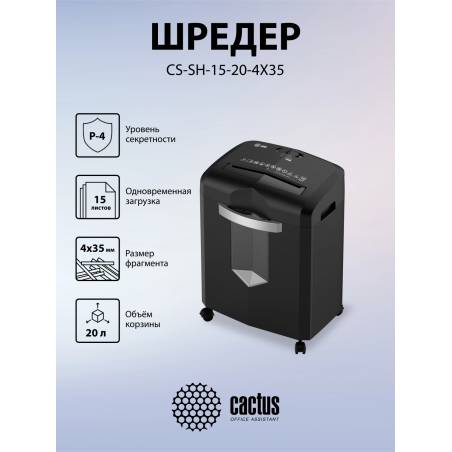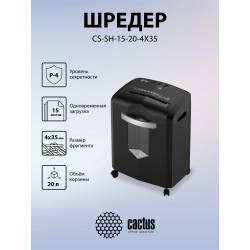 Шредер Cactus CS-SH-15-20-4X35 (секр.P-4) фрагменты 15лист. 20лтр. скрепки скобы пл.карты CD