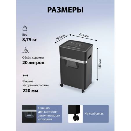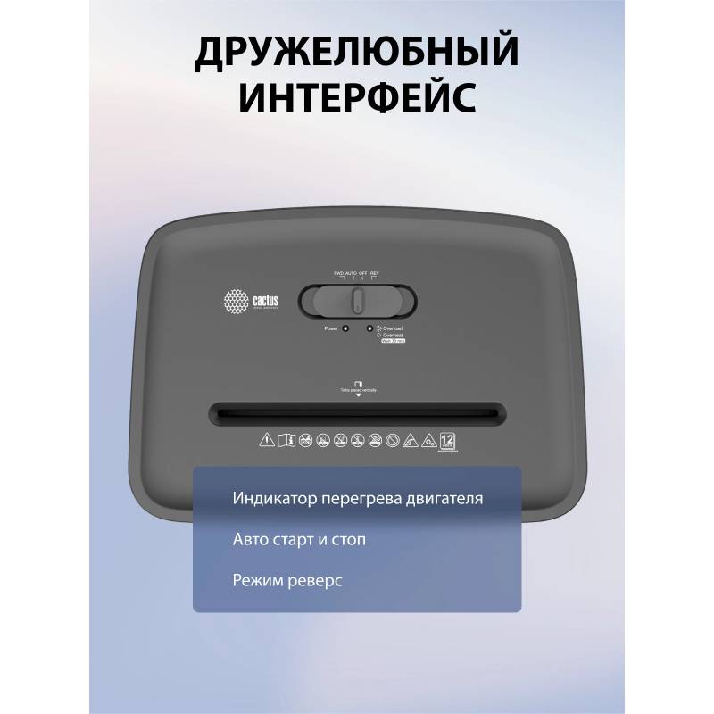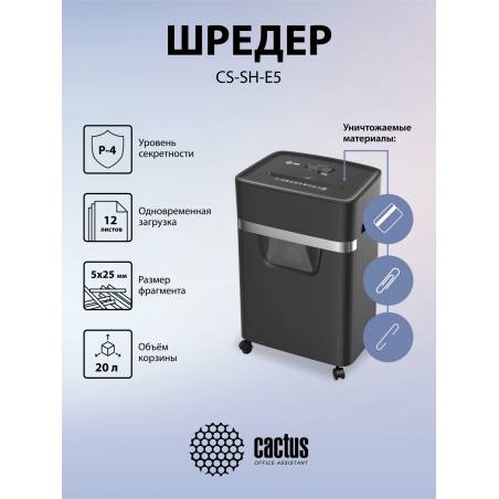 Шредер Cactus CS-SH-E5 (секр.P-4) фрагменты 12лист. 20лтр. скрепки скобы пл.карты