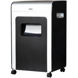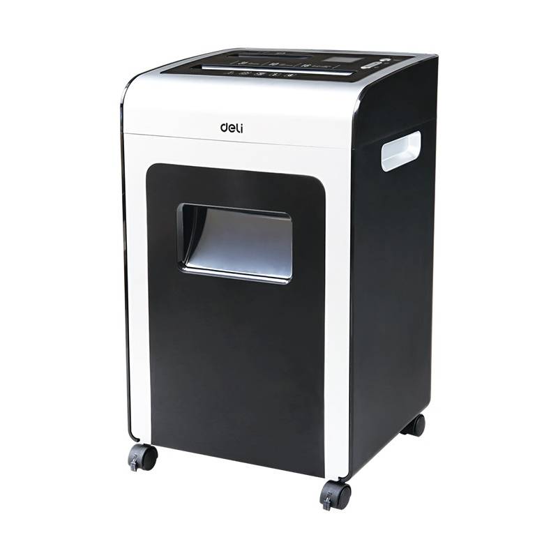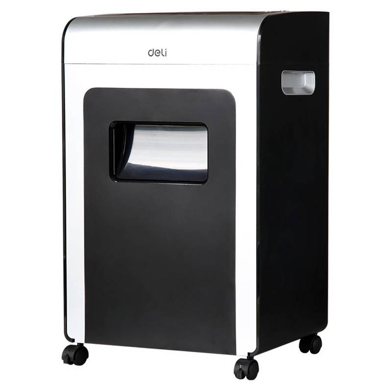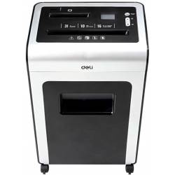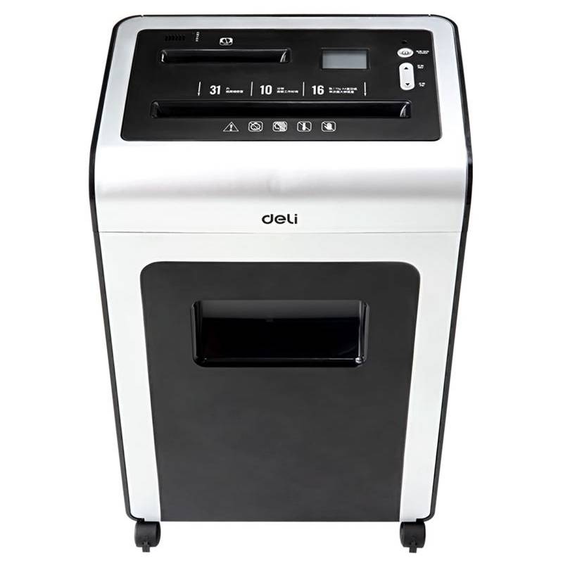 Шредер Deli E9917-EU черный/белый с автоподачей (секр.P-4) фрагменты 16лист. 31лтр. скрепки скобы пл.карты CD