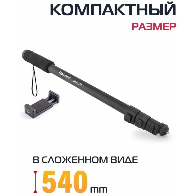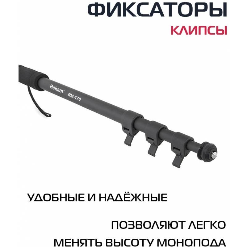 Штатив монопод Rekam RM-170 универсальный черный алюминий (375гр.)