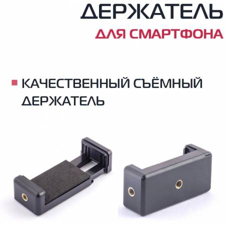 - универсальный 4-секционный монопод укомплектованный высококачественным держателем для смартфонов с диагональю экрана до 6.5 дюймов. Основная особенность, отличающая монопод от штатива – наличие одной опорной «ноги».