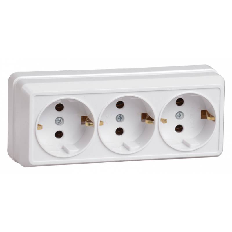 Розетка силов. IEK Октава ERO31-K01-16-DC 3розет. тройн. откр. зазем. крыш. IP20 белый (упак.:1шт)