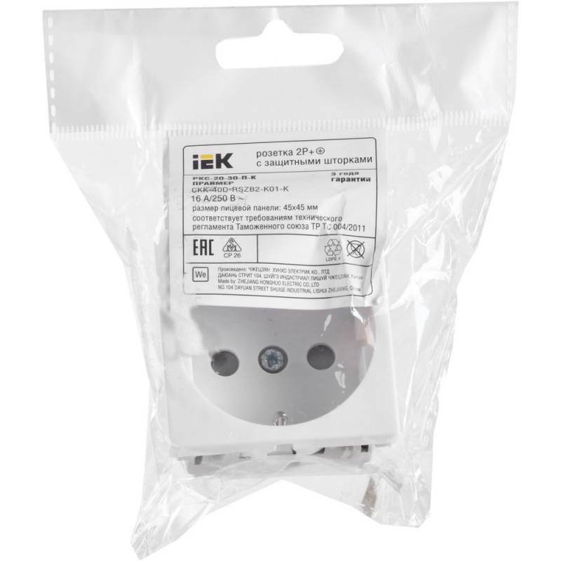 Розетка силов. IEK CKK-40D-RSZB2-K01-K одинар. скрыт. зазем. штор. IP20 белый (упак.:1шт)