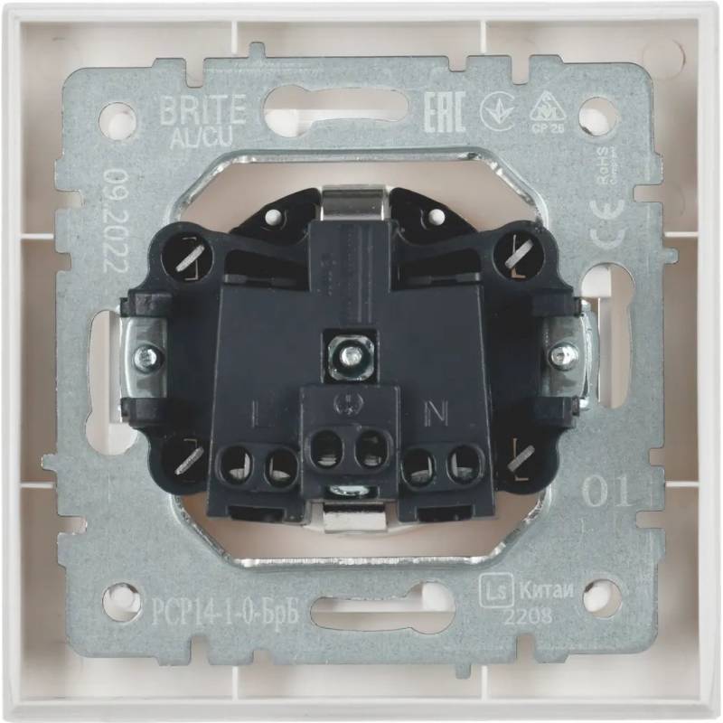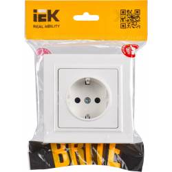 Розетка силов. IEK Brite РСР14-1-0-БрБ BR-R14-16-K01-F одинар. скрыт. зазем. штор. IP20 белый (упак.:1шт)