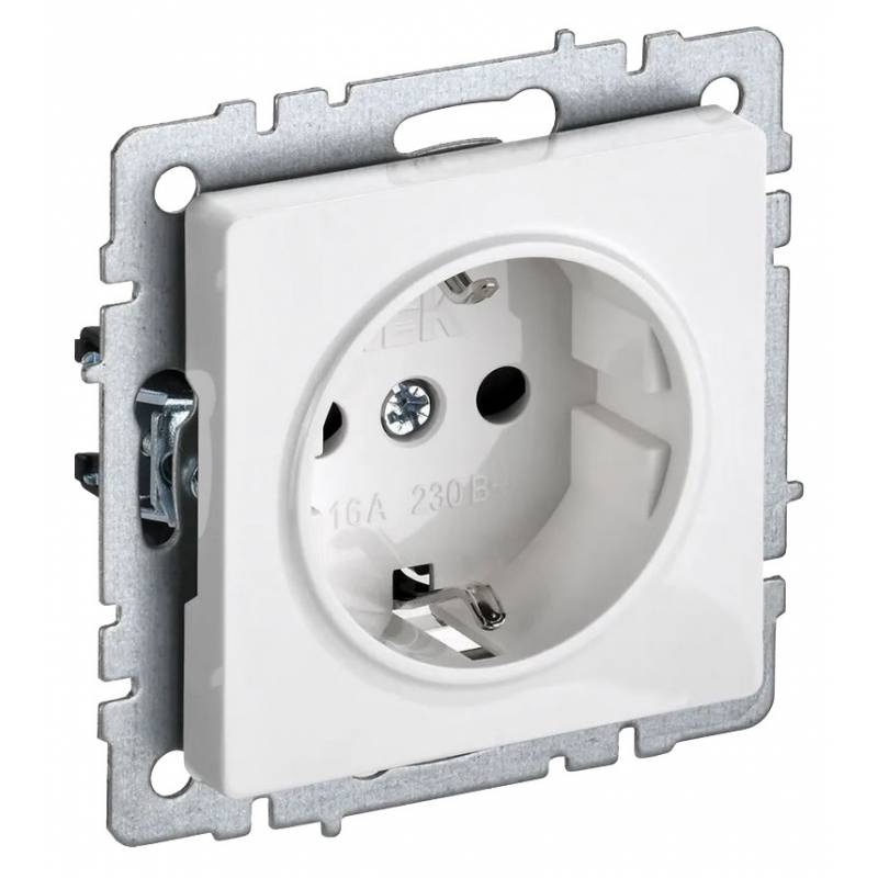 Розетка силов. IEK Brite РС14-1-0-БрБ BR-R14-16-K01 одинар. скрыт. зазем. штор. IP20 белый (упак.:1шт)