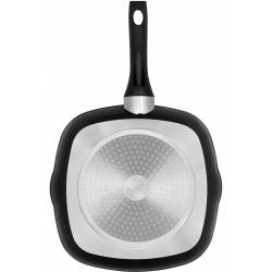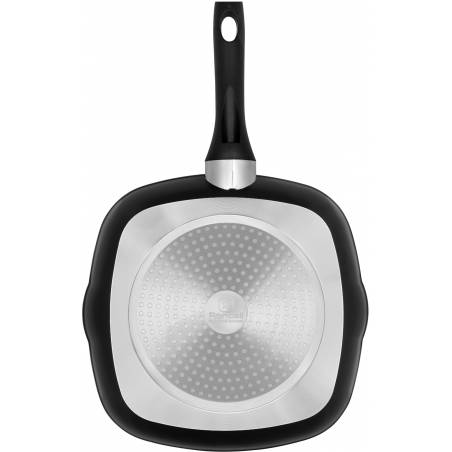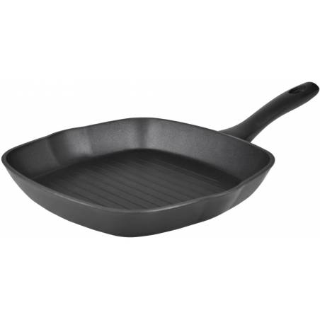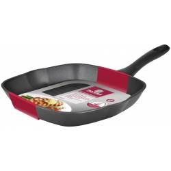 - Аксессуары: прочная бакелитовая ручка. Преимущества: ребристое дно для "гриль"-эффекта при жарке; Равномерный прогрев изделия; Равномерная толщина стенок и дна посуды; Классическая форма. Упаковка: картонный рукав.
