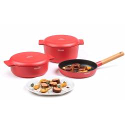 - Яркая коллекция посуды Red Edition из утолщенного литого алюминия станет настоящим украшением Вашей кухни благодаря лаконичному дизайну и красному цвету внешнего покрытия. Бакелитовая ручка с покрытием soft touch, стилизованная под дерево придает изделию