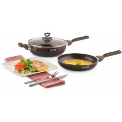 - Аксессуары: из бакелита с покрытием Soft Touch. Преимущества: специальное внешнее термостойкое покрытие для легкого ухода; Xylan® Plus – двухслойное, долговечное антипригарное покрытие для интенсивного использования. Равномерная толщина стенок и д