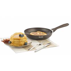 - Создавать кулинарные шедевры позволит вам сковорода коллекции Grillage. Изготовленная из штампованного алюминия сковорода отличается теплопроводностью, благодаря которой продукты жарятся или тушатся равномерно. Стильный оригинальный дизайн, изысканный шок