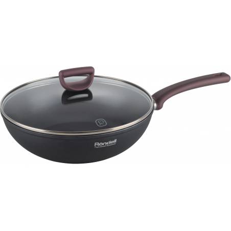 Сковорода ВОК (WOK) Rondell Fest RDA-1527 круглая 28см покрытие: Xylan Plus ручка несъемная (с крышкой) черный
