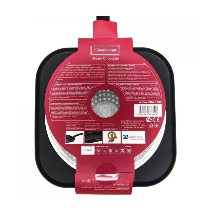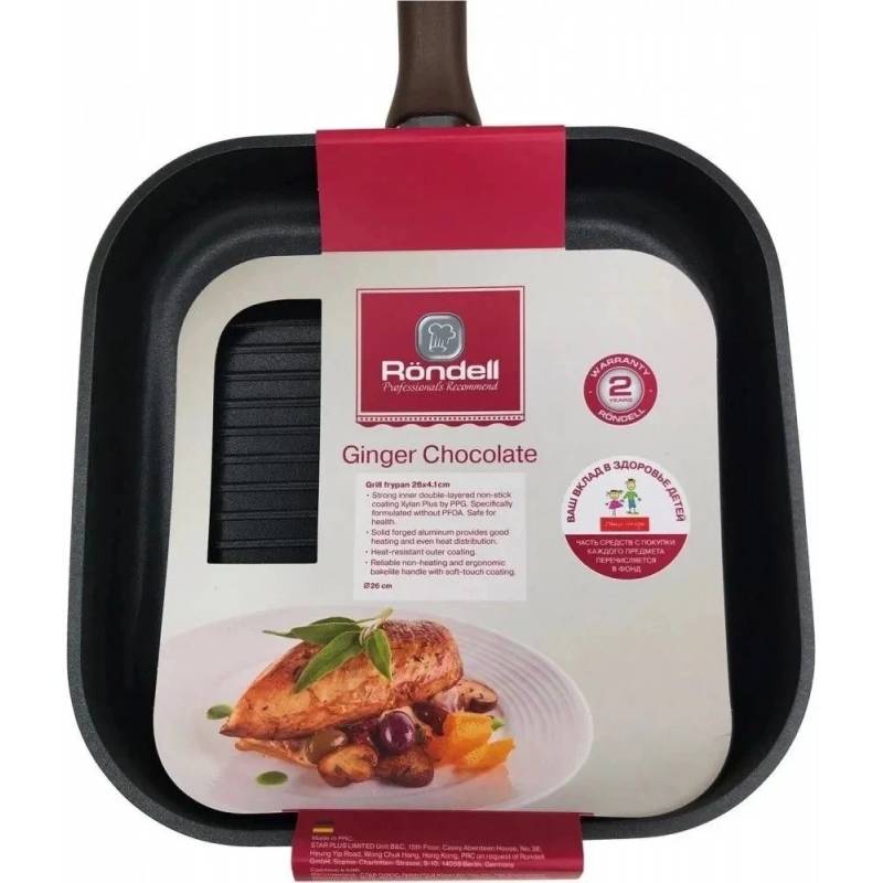 Сковорода-гриль Rondell Ginger Chocolate RDA-1531 квадратная 26см покрытие: Xylan Plus ручка несъемная (без крышки) черный