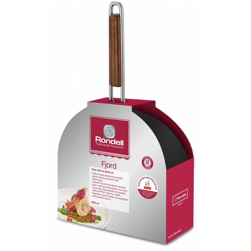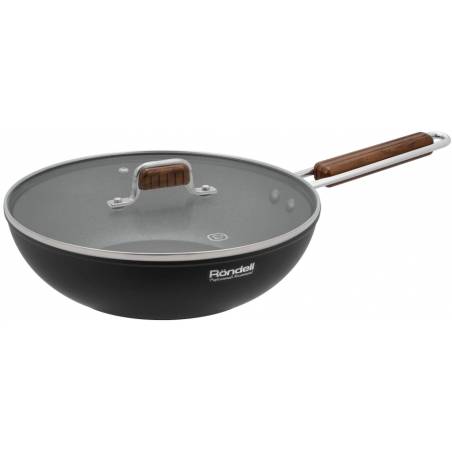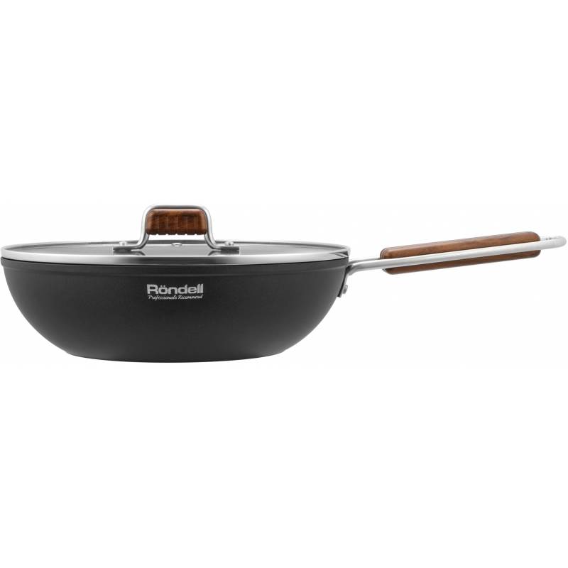 Сковорода ВОК (WOK) Rondell Fjord RDA-1800 круглая 28см покрытие: Xylan Plus ручка несъемная (с крышкой) черный