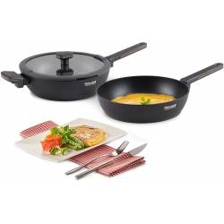- Аксессуары: cтильные бакелитовые ручки с силиконовыми вставками. Использование: подходит для всех видов плит, включая индукционные. Подходит для ПММ при условии использования неагрессивных моющих средств с нейтральным уровнем pH